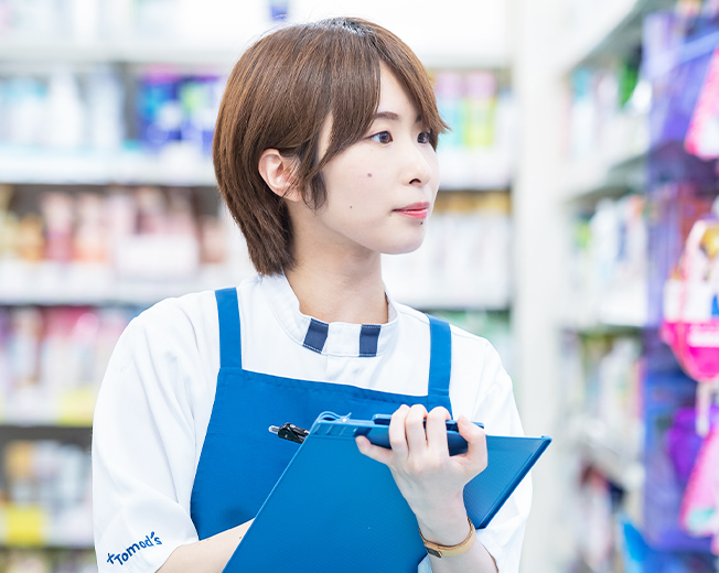 少子高齢化が進み、今後は調剤併設のドラッグストアのニーズがさらに高まっていきます。相談機能の強化を目指すトモズの一員として、お客様からもっと信頼をいただける店員となることが目標です。