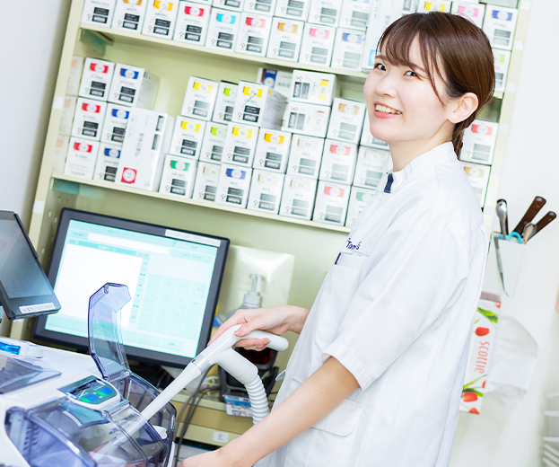 もう一つは、薬剤師一人あたりの処方箋枚数20枚を目安に人員を確保していること。省令で示される、1人あたり40枚に比べると人員にゆとりがあります。そのため、医療過誤が起きない様しっかり確認して薬を用意するなど、問題を抱える患者様にはじっくり向き合って対応することができます。おのずと社内の雰囲気も良好で、風通しも良い社風です。
